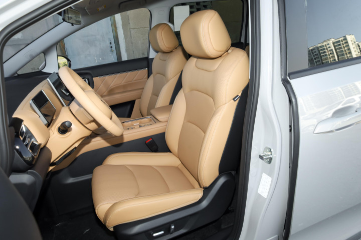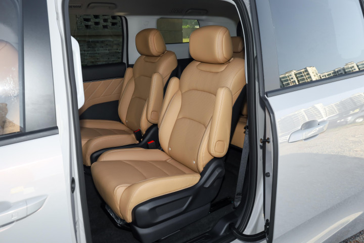 而作为一款MPV车型来说,座椅的舒适度表现也是关键所在,这款车型的座椅配备的是舒适五感高舒座椅设计,前排座椅可180°大角度放平,秒变舒坦大躺椅,中排配备双侧扶手,多角度可调,后排座椅可4/6分比例放倒,靠背可调至127°,让全家人舒享自由感;高厚度10mm座椅复合皮面,而且座椅部分在功能性方面也有较为丰富的配置,如座椅加热、通风等功能配置也在这款车型上有所搭载,能够为乘客与司机带来较为舒适且丰富的座椅舒适度。同时值得一提的是这台车型在二排部分配备有电动侧滑门的设计,这在同级别也是比较少见的功能配置,这样的搭配不仅能够方便乘客上下车,同时还能够有效彰显出这款车型的档次感与豪华感。
